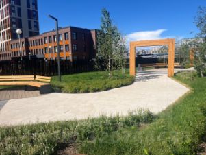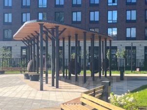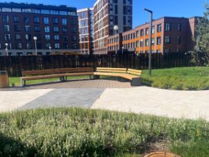 Своя закрытая территория, с современными зонами отдыха и детскими площадками.