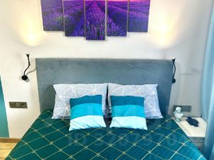В номере: двуспальная кровать 160Х200 с ортопедическим матрасом, телевизор со смарт тв, Wi-Fi, холодильник, микроволновка, индукционная плита, чайник, утюг, фен.