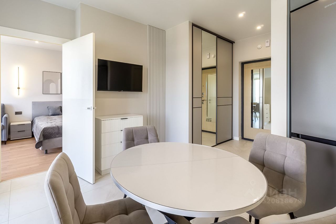 Квартира имеет продуманную планировку, состоящую из просторной кухни, зонированной спальни с отдельной гардеробной, совмещённого с/у, прихожей с продуманной системой хранения, и утепленной отапливаемой лоджией, где при желании возможна организация комфортного рабочего места. Вся необходимая техника и мебель, включая стиральную и посудомоечную машину.