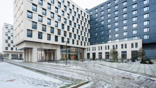 На территории комплекса расположены жилые апартаменты, а также зона общественного пространства: коворкинг, подкаст-студии, переговорные, услуги бизнес-центра, многофункциональная зона лобби, кафе, ресторан, фитнес-клуб и спа-зона.