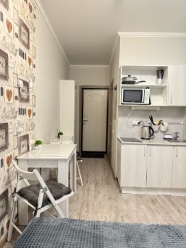 в апартаментах есть мини-кухня с холодильником, чайником, плитой, микроволновой печью, а также набором посуды для приготовления еды.