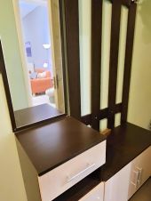 Двуспальная кровать с ортопедическим матрасом, удобный раскоадной диван , высокоскоростной интернет Wi-Fi со встроенным VPN , ЖК Телевизор 55 дюймов со SmartTV,компьютерный стол со стулом, шкаф для одежды ,журнальный стол, комод ,прикроватные тумбы, на окнах шторы блэкаут, чайник, сушилка для белья, фен, гладильная доска, утюг, набор посуды, торшер , на кухне своя кухонная зона с личным: холодильником, газовой плитой, микроволновой печью. В ванной своя стиральная машина и шкаф.