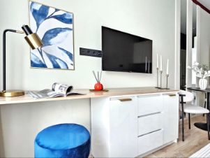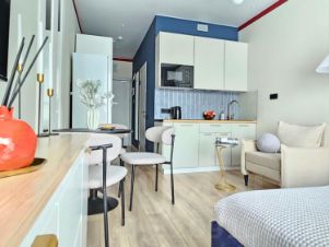 Спальная зона с комфортной двуспальной кроватью 140х200 и матрасом Аскона. Раскладное одноместное кресло еще для одного взрослого. Телевизор с цифровыми каналами, бесплатный WI-FI;