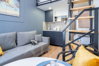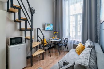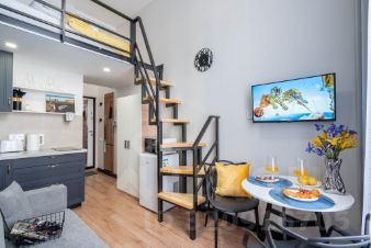 Площадь студии составляет 15 м² + 4 м² второго яруса, который является спальным местом. Возможное размещение: до 3 человек.