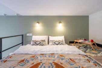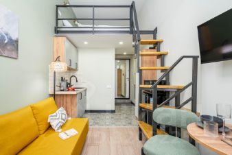 Площадь студии составляет 19 м² + 6 м² второго яруса, который является спальным местом. Возможное размещение: до 3 человек.