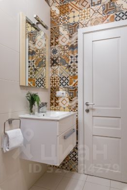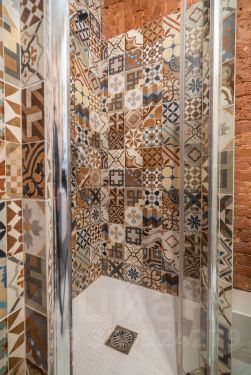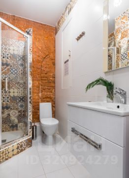 Просторная ванная с душевой, феном и средствами гигиены