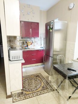 "Евродвушка со свежим ремонтом, новой мебелью и сантехникой. Есть сауна для двоих-троих персон с финской печкой, джакузи, писсуар, гигиенический душ, теплые полы почти во всей квартире.
