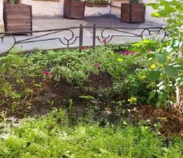 Тихий зеленый двор в глубине от дороги,которая, сама по себе, тоже без трафика.