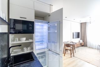 Кухня оснащена всей необходимой техникой.