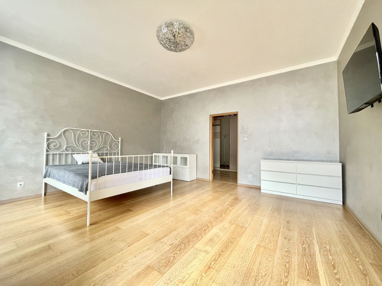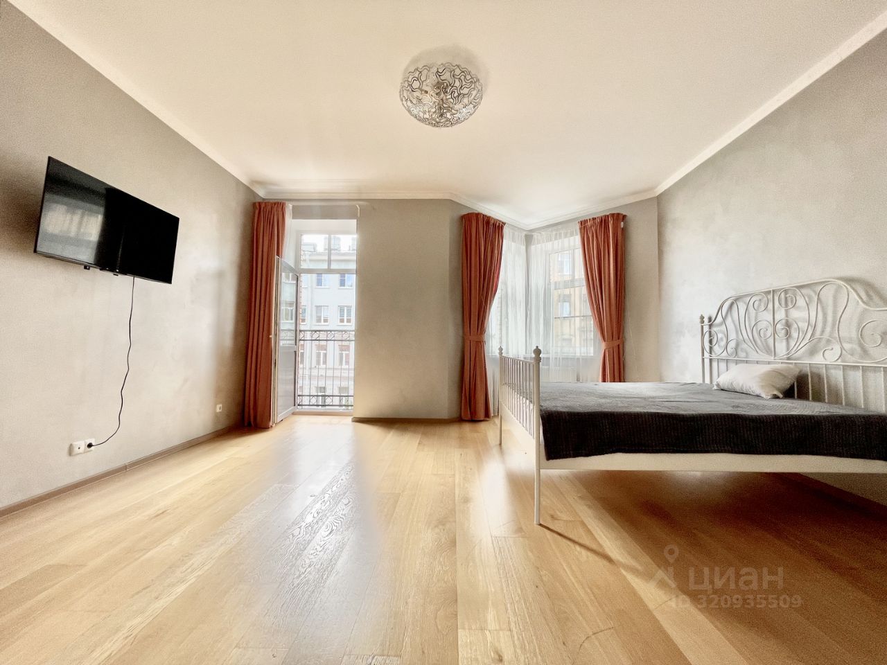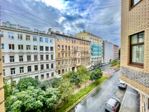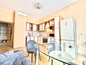 Просторная и светлая однокомнатная квартира с высокими потолками 3м общей площадью 70м2 с комнатой неправильной формы с французским балконом, большой кухней площадью 15м2, отдельной ванной комнатой и просторным холлом.