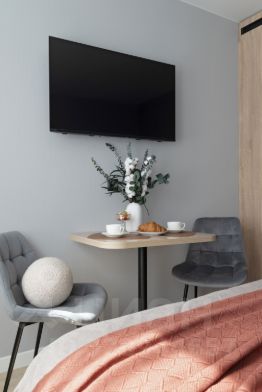 В квартире сделан дизайнерский ремонт, который создаёт атмосферу уюта и стиля. Здесь есть вся необходимая мебель в комнате, а также современная техника: кухня с варочной поверхностью и вытяжкой, СВЧ- печь, капсульная кофе-машина, чайник, умная колонка, кровать (1 двуспальная 160*200) с высококачественными ортопедическими матрасами, полный комплект текстиля, шторы, набор посуды, утюг, фен, гладильная доска, сушилка для белья, кондиционер, холодильник, телевизор и стиральная машина. Санузел совмещённый, оборудован душевой кабиной.