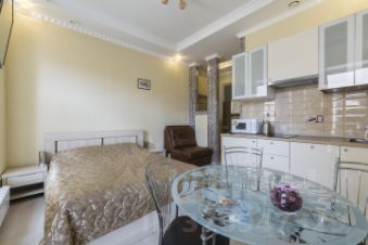 Уютная светлая студия прямо около Дворцовой площади и Эрмитажа со всеми удобствами, с размещением до 3-х человек, 3 этаж без лифта. Два окна выходят в тихий зеленый двор, из двора есть выходы на набережную реки Мойки и на Большую Конюшенную улицу - одну из самых красивых улиц центра. В соседнем доме музей-квартира Пушкина. Рядом театры, множество кафе и ресторанов, знаменитые достопримечательности. На кухне плита, холодильник, посудомоечная машина, парковка во дворе, в ванной стиральная машина. Теплые полы создают дополнительный уют в осенне-зимние холода. Водонагреватель на случай отключения горячей воды. Весь центр города в шаговой доступности. Очень тщательная уборка квартиры.