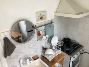 Вся необходимая техника в квартире есть: большой холодильник, стиральная машина, микроволновка.