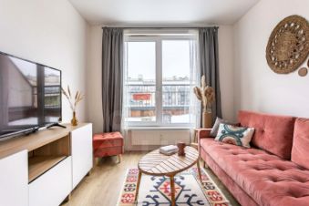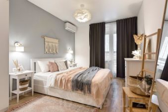 Квартира с хорошим ремонтом в скандинавском стиле с большой террасой, полностью укомплектована и оснащена всем необходимым для комфортной работы и полноценного отдыха: современная мебель, шкафы, холодильник, удобная кровать, встроенная кухня, сан/узел в кафеле, стеклопакеты, в доме есть подземный паркинг, кондиционер, благоустроенный, закрытый, охраняемый двор.