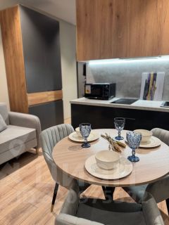 обеденная зона ( холодильник, чайник, микроволновка, плита, наличие посудомойки уточняйте ,столовая группа, посуда на 3 персоны, стол со стульями)