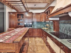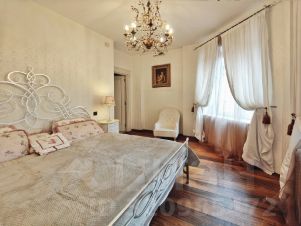 Вся мебель в квартире из натуральных материалов, производства итальянской фабрики Buxter, антикварные книжный шкаф, каминное зеркало, люстры и бра. Интерьер квартиры украшают картины талантливых художников и большой мраморный камин-портик. В гостиной предусмотрено несколько световых режимов для уютного вечера. В каждом помещении установлены кондиционеры Дайкин с системой охлаждения, обогрева, очистки и увлажнения воздуха. Стиральная машина Miele с сушкой, в кухне также есть все необходимое для комфортного отдыха, а также система очистки питьевой воды Цептер. В квартире установлены теплые полы. Работает wi-fi, умная колонка Алиса, пакет цифрового ТВ. Если вы на машине, в паркинге есть парковочное место, рядом с домом зона платной парковки.