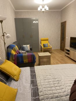 **Кафельная плитка на полу с подогревом. В прихожей вместительный шкаф-купе ,а также в комнате есть большой трехстворчатый шкаф