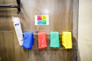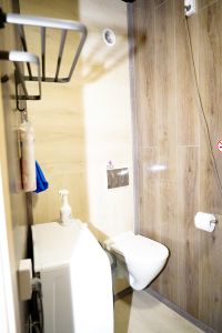 Санузла в комнате НЕТ. Душевая кабина в одном из санузлов используется только этой комнатой, т.к. в других комнатах установленны свои душевые кабины.