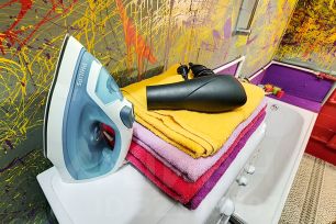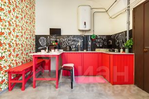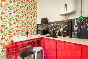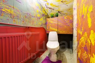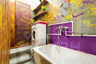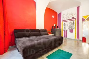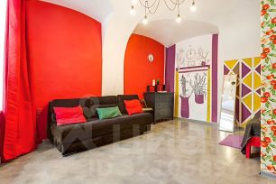 В квартире сделан дизайнерский ремонт. Высокие потолки, отделка выполнена в ярких цветах. Общая площадь около 40 кв. метров.