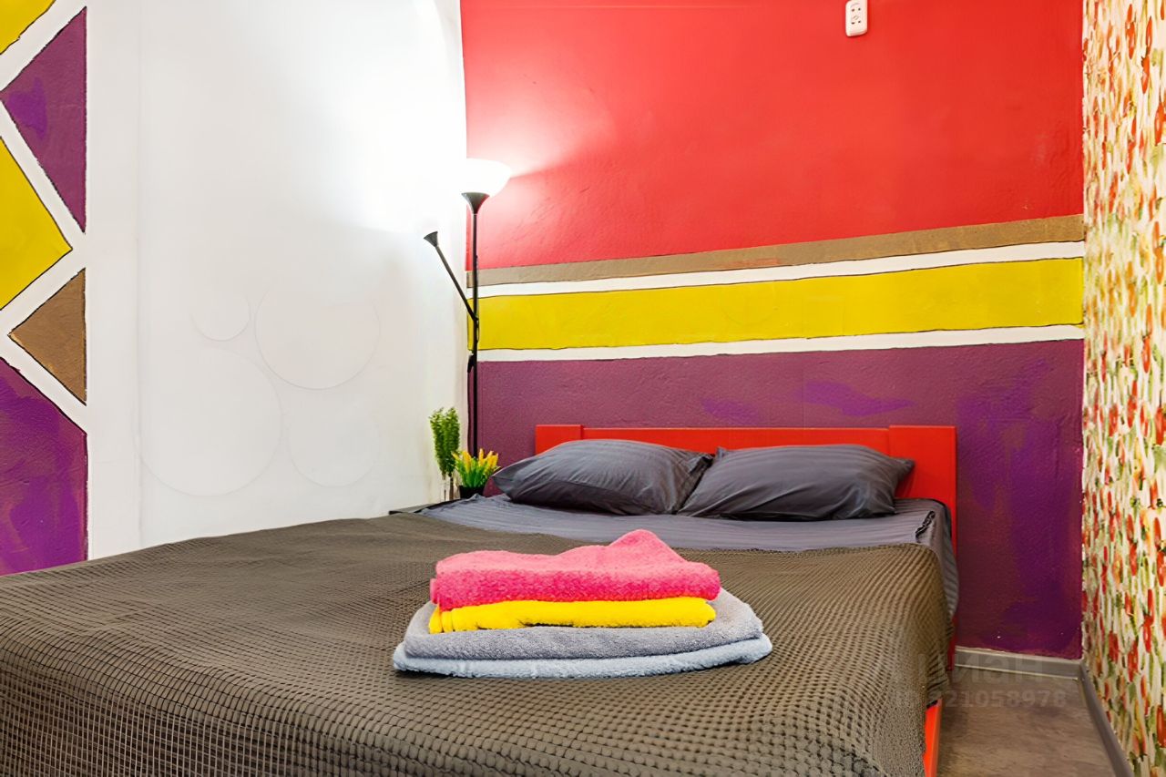 В квартире большая двуспальная кровать и диван-тахта, которая раскладывается в спальное место. Уютная кухня, выполненная в ярких цветах. Возможно проживание до 4-х гостей.