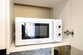 В кухонной зоне: микроволновая печь, плита, холодильник, чайник, посуда и столовые приборы на любой случай.