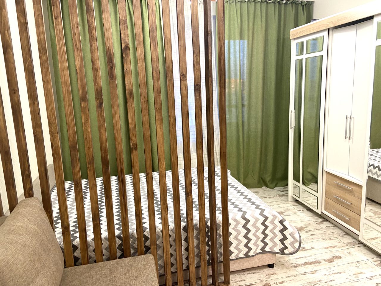 Двуспальная кровать с подъемным механизмом (дополнительное место для хранения: удобно убирать чемоданы и вещи не по сезону);