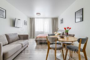 Уютная студия расположена в Красногвардейском районе Санкт-Петербурга.