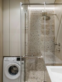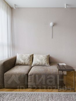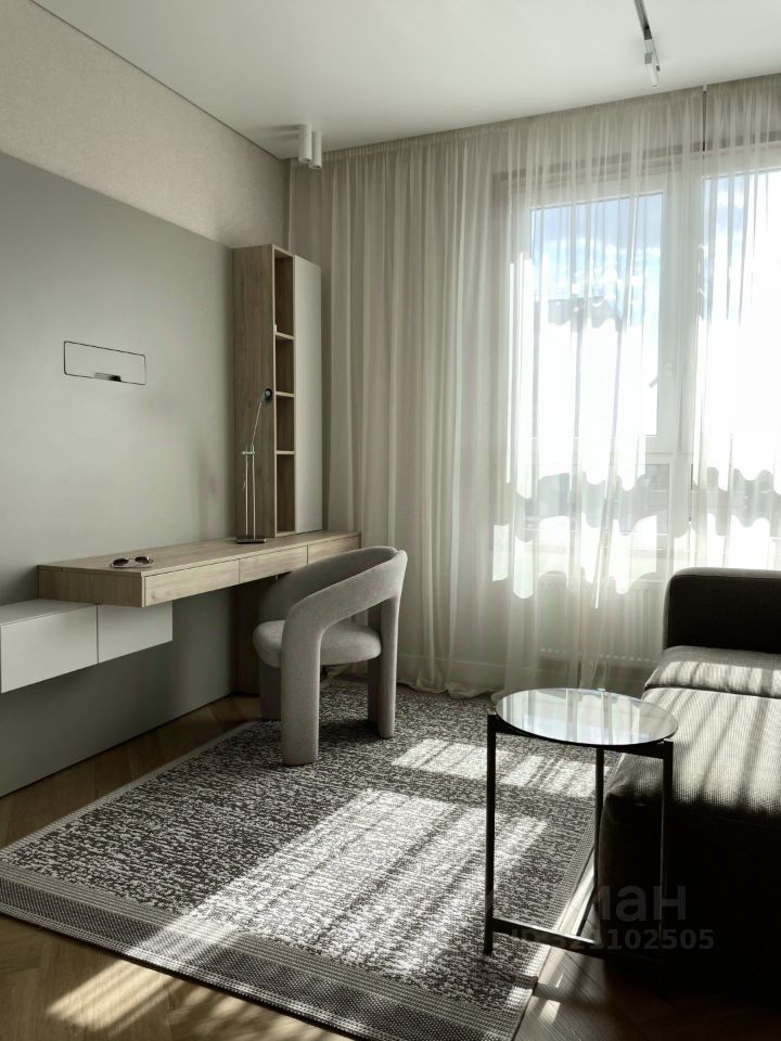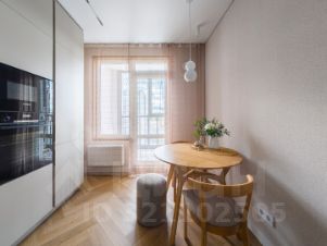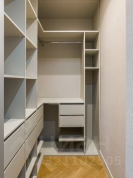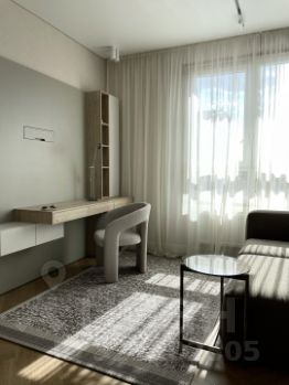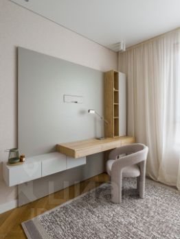 Планировка с отдельной кухней, гостиной-спальней, где кровать-трансформер с итальянским механизмом, большой гардеробной и совмещенной ванной комнатой. Организовано удобное рабочее место. Лоджия с остеклением "в пол". Гардеробная вместительная, хорошо оборудованная.