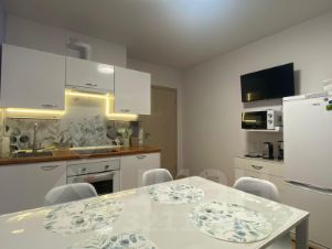 2-х комнатные Апартаменты имеют удобную планировку: двухсторонние, 3 большие лоджии (из каждой комнаты + из кухни), всего 7 спальных мест (+ 1 доп место - раскладной диванчик на кухне). Квартира Оснащена всем необходимым для проживания (в том числе с маленькими детками): посудомойка, духовка, микроволновка, мультиварка, кофеварка и все необходимые для комфортного проживания мелочи.