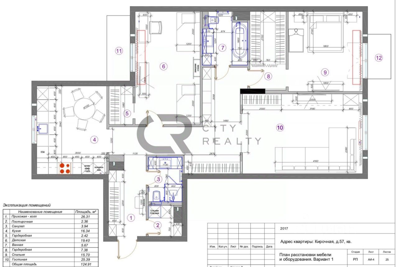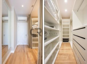 В квартире есть много эргономичных мест для хранения и также гардеробная.
