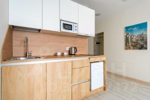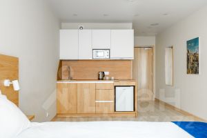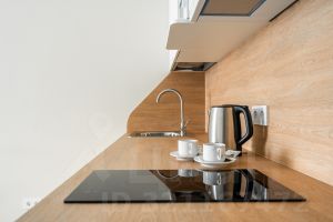 • Варочная панель, вытяжка, холодильник (67 л), микроволновка, чайник;