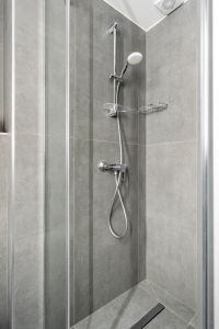 • Душевая кабина, раковина, зеркало с подсветкой;
