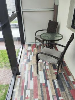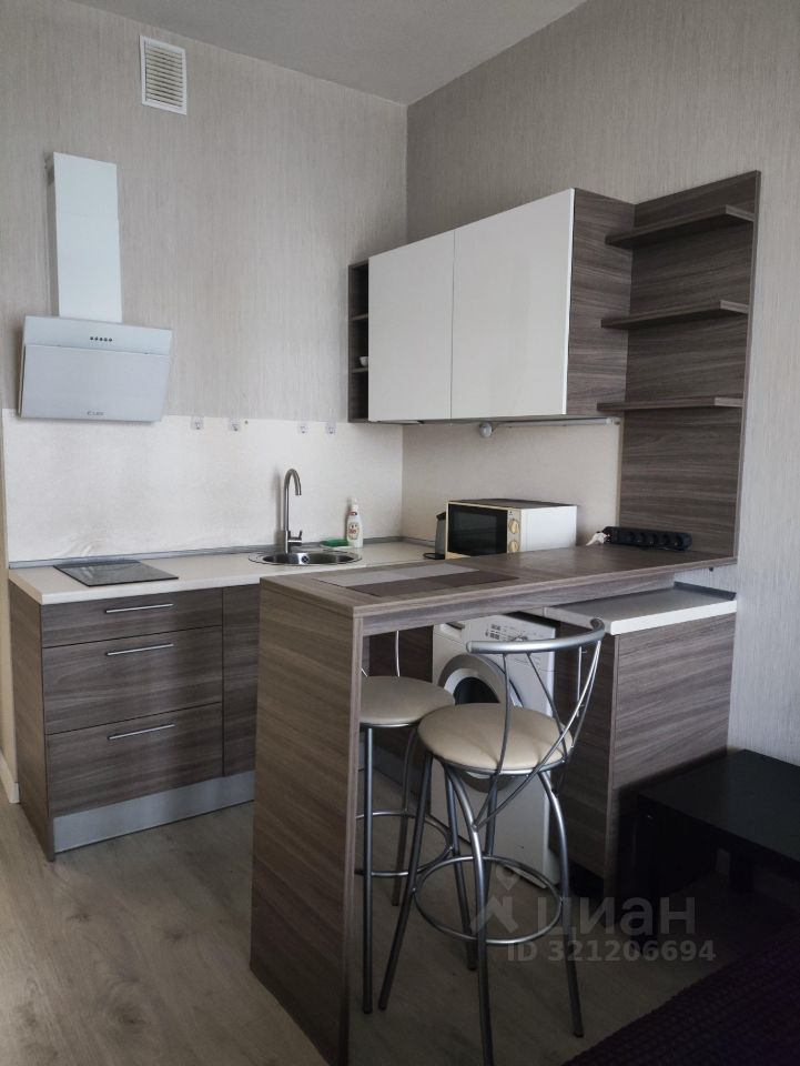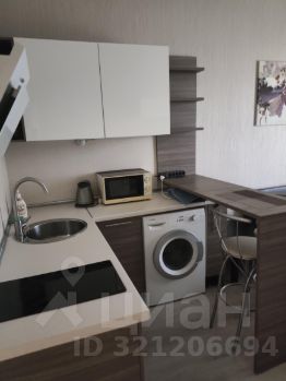 В студии выполнен дизайнерский ремонт, который создаёт атмосферу комфорта и уюта. Есть вся необходимая мебель как в комнате, так и на кухне. К вашим услугам современная бытовая техника: холодильник, телевизор и стиральная машина. В ванной комнате установлена душевая кабина. Изюминкой квартиры является просторная лоджия, где можно наслаждаться видом на город.