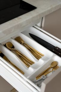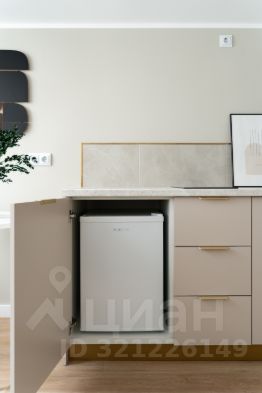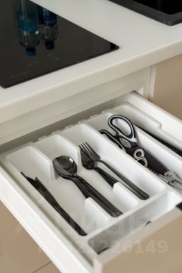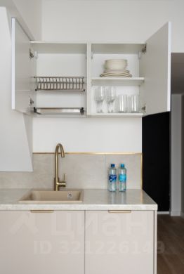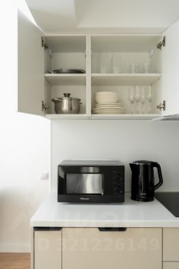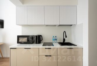 Кухонная зона с плитой, чайником, микроволновкой и полным набором посуды;