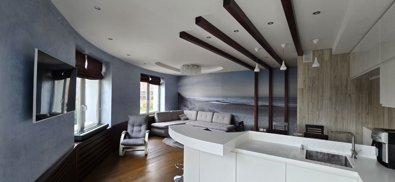 Квартира площадью 130 кв.м., 3 полноценные комнаты, большая кухня-гостинная, 2 с/у, полностью оборудованная техникой и мебелью ручной работы из разных пород натурального дерева, современным дизайном, отремонтированная, готова для быстрого вьезда.