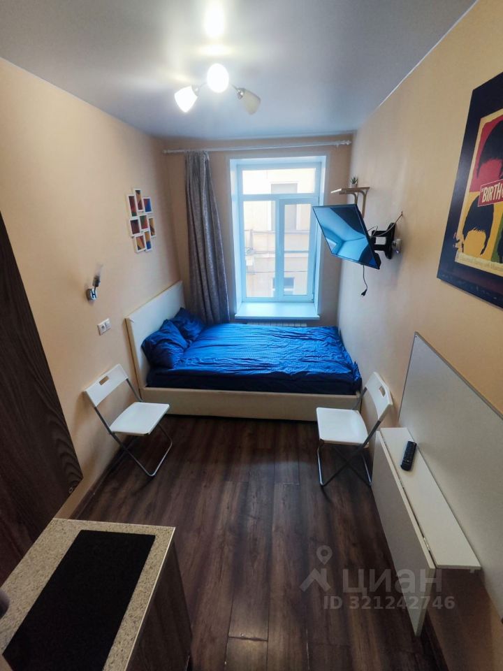 Студия, рядом с метро Чернышевская. Внутри в студии спальное место, кровать 140*200, кухонный гарнитур, плита стекло-керамика, холодильник, стол, стулья, телевизор, санузел. В местах пользования, вместе с другими студиями стиральная машинка.