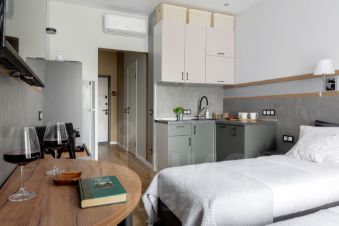 Новая стильная студия, идеально подходящая для романтического уикенда или спокойного отдыха вдвоем. В квартире есть все необходимое для вашего комфорта: новая мебель, бытовая техника, кондиционер, водонагреватель, посуда, свежие постельные принадлежности и мягкие полотенца, а также гигиенические средства. Здесь вы сможете наслаждаться вечерними беседами и уютными моментами вдвоем.