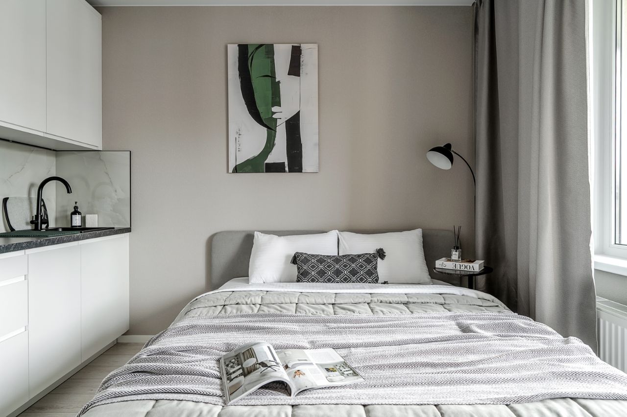 Стильная студия Minori в Московском районе студия для проживания 2х гостей (широкая 2-х спальная кровать)