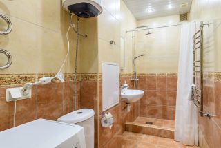 Современный санузел с душевой кабиной.