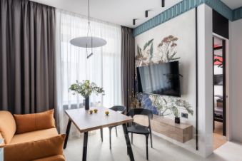 • Шторы блэк-аут в спальне и на кухне