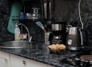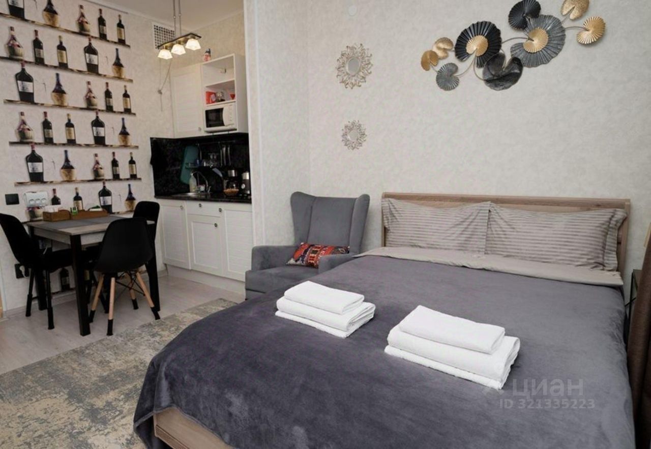Из окон студии видно башню Олафа, главную достопримечательность Выборга. В зоне спальни, в нише, расположена двуспальная кровать 140*200. Очень удобный ортопедический матрас и ортопедические подушки. Также в зоне отдыха находится прекрасный ортопедический диван, который раскладывается в дополнительные спальные места. Зона отдыха в комнате - идеальное место для просмотра телевизора, приема пищи, комфортного времяпрепровождения. Зона кухни оснащена: варочной поверхностью, холодильником, микроволновой печью, электрическим чайником, заварочным чайником и чаем к нему, гейзерной кофеваркой (также в квартире имеется заварной кофе). В шкафах и ящиках хранится посуда (кастрюли, ковшик, сковородки), тарелки, чашки, фужеры, стаканы и столовые приборы, а также необходимые мелочи (лопаточки, штопор, открывалка и прочее). В зоне кухни установлен обеденный стол. Также имеется кран-фильтр для питьевой воды. Санузел с просторной душевой и тропическим душем, зеркалом с подсветкой, и электрическим полотенцесушителем. Также в ванной комнате имеются все необходимые гигиенические женские принадлежности, принадлежности для ухода за лицом. Также каждому гостю предоставляется индивидуальный набор полотенец. Прихожая оснащена зоной, где можно расположить свою верхнюю одежду, а также полка для обуви. Также в прихожей имеется большое зеркало с подсветкой.