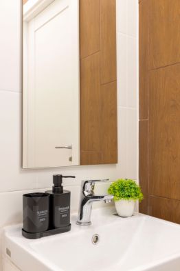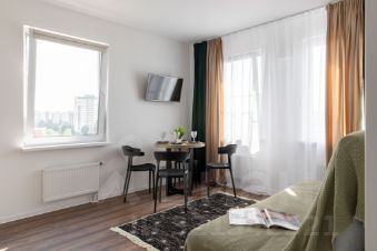 Симпатичная светлая квартира, оборудованная всем необходимым для комфортного проживания (мебель и бытовая техника, а также посуда и столовые приборы).