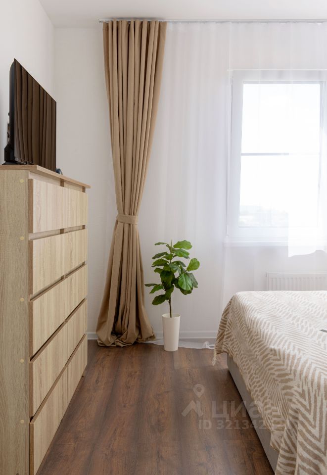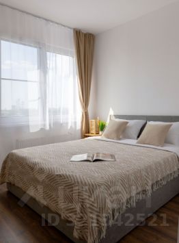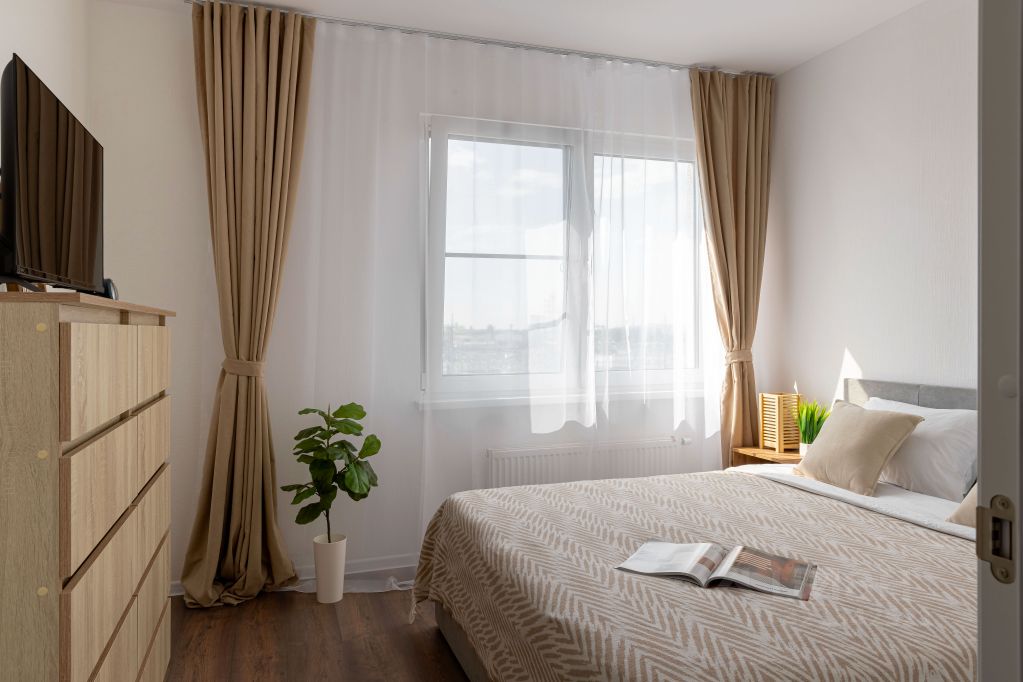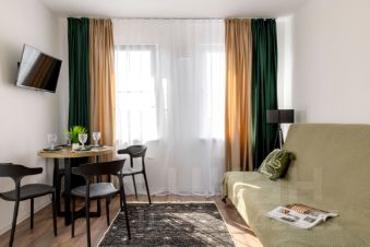 В квартире с комфортом могут разместиться 4 человека, в комнате двуспальная кровать, просторная кухня-гостиная оборудована раскладным диваном.