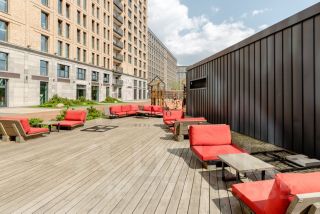 Внутри комплекса есть фитнес-центр и ресторан. Во дворе расположена детская площадка и зона для отдыха. Рядом находится набережная, магазины, кафе и рестораны.