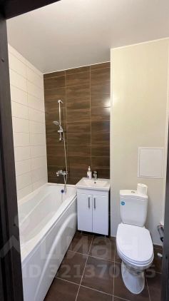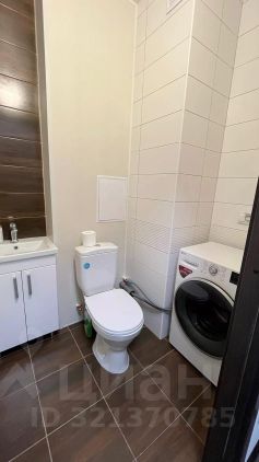 Санузел оборудован ванной и стиральной машиной LG. В квартире также есть застекленный балкон.