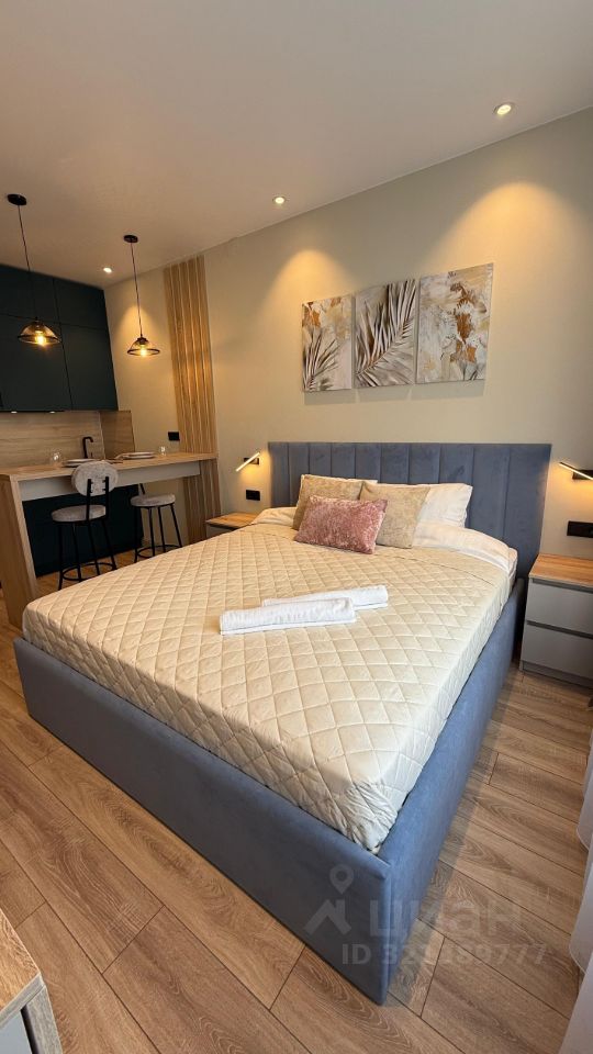 В студии сделан дизайнерский ремонт, который создаёт атмосферу уюта и современного стиля. Вся необходимая техника в наличии: холодильник, телевизор, стиральная и посудомоечная машины.