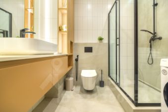 - ванная комната с просторной душевой кабиной, гигиеническим душем и бойлером для бесперебойного снабжения горячей водой,