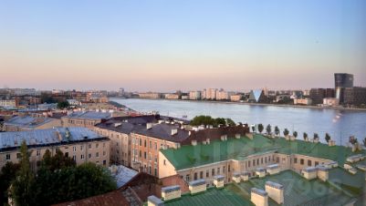 Ваше личное уютное пространство в сердце Петербурга на 10-м этаже с панорамой на Неву и Большеохтинский мост.