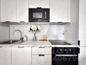 Полностью оборудованная кухня (варочная панель, микроволновка, холодильник)