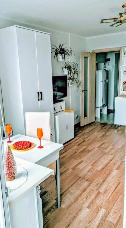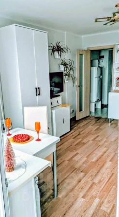 Душ.кабина . Балкон застеклён . Электроплита с духовкой . Вытяжка с подсветкой .
